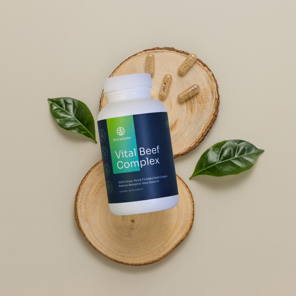 NutraVantix is made from 100% grass-fed, grass-finished beef liver, heart, kidney, and bone marrow sourced from pasture-raised cattle in New Zealand. We also include clinical-grade magnesium glycinate, zinc picolinate, and black pepper extract for optimal absorption. Every ingredient is non-GMO and free from hormones, antibiotics, fillers, or preservatives.